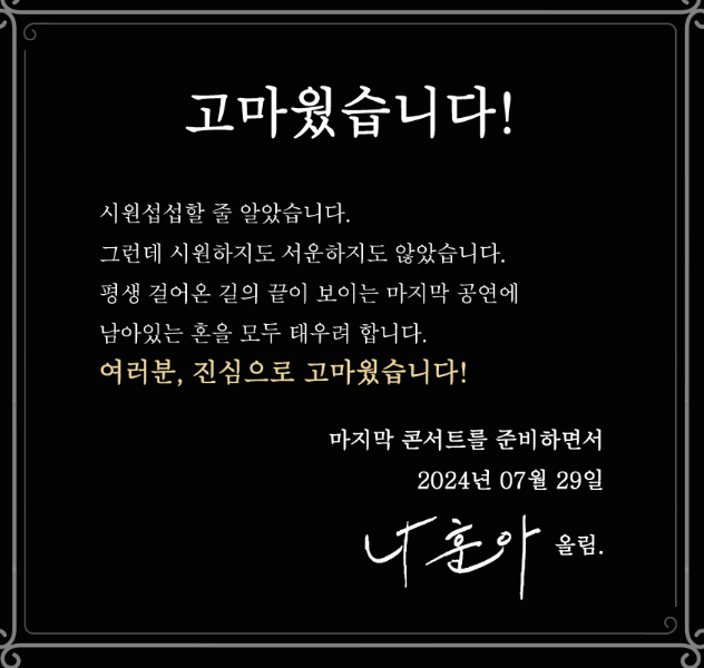 한시대를 풍미한 '영원한 오빠' 나훈아 <2024 고마웠습니다-라스트 콘서트>