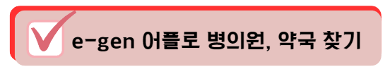 - 보건복지에서 제공하는 E-Gen은 지역과 지정한 날짜를 통해 조금더 상세히 찾을 수 있다. 내 주변 병의원, 약국을 효율적으로 찾을 수 있다.