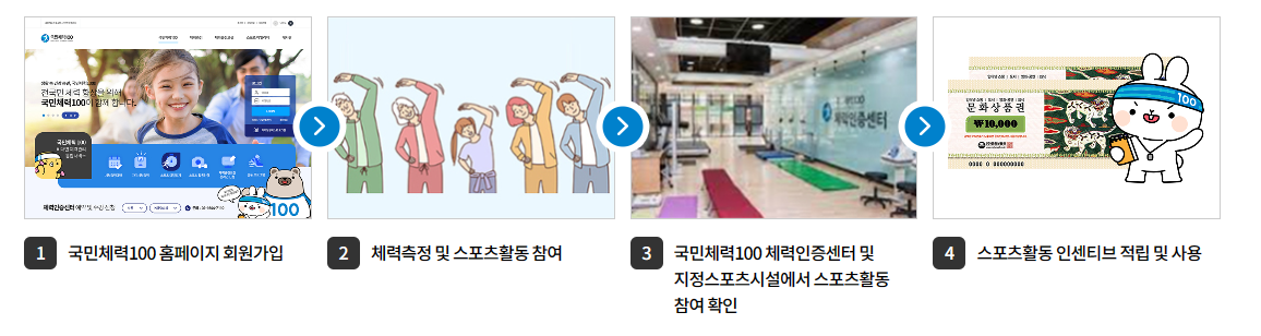- 신청방법 : 국민체력 100 홈페이지에서 회원가입 후 신청