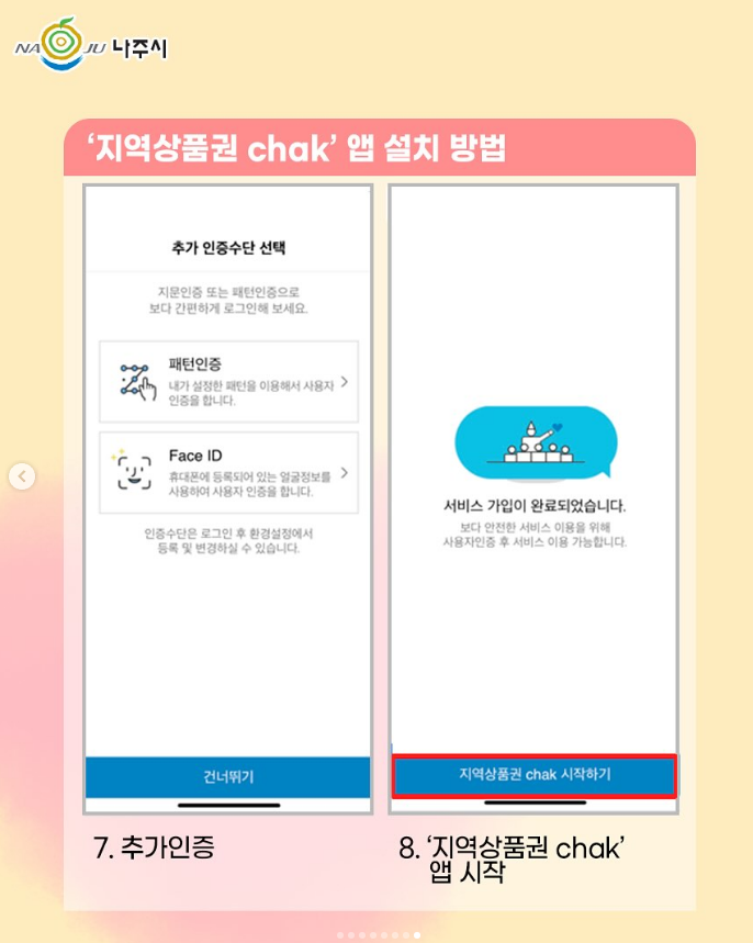 지원금을 온라인으로 받기 위해서는 사전에 먼저 [지역상품권 chak]를 사전 설치하여야 받을 수 있다.